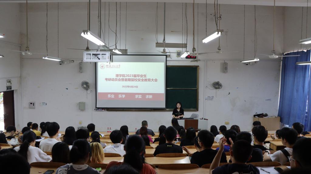 为充分调动理学院2023届毕业生的考研热情与积极性,增强考研学子的信心和信念,并进一步筑牢暑期考研留校学生的安全管理工作,6月24日,理学院召开2023届毕业生考研动员会暨暑期留校学生安全教育大会。学院党委副书记钟立军、副院长李明、数理实验室主任马家峰、学工组长夏晴及全体留校学生参加会议。会议由2023届毕业生辅导员彭娇娇主持。