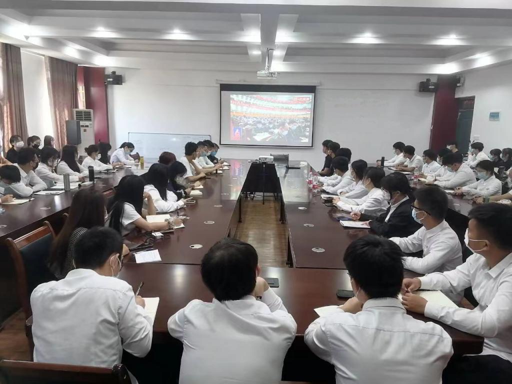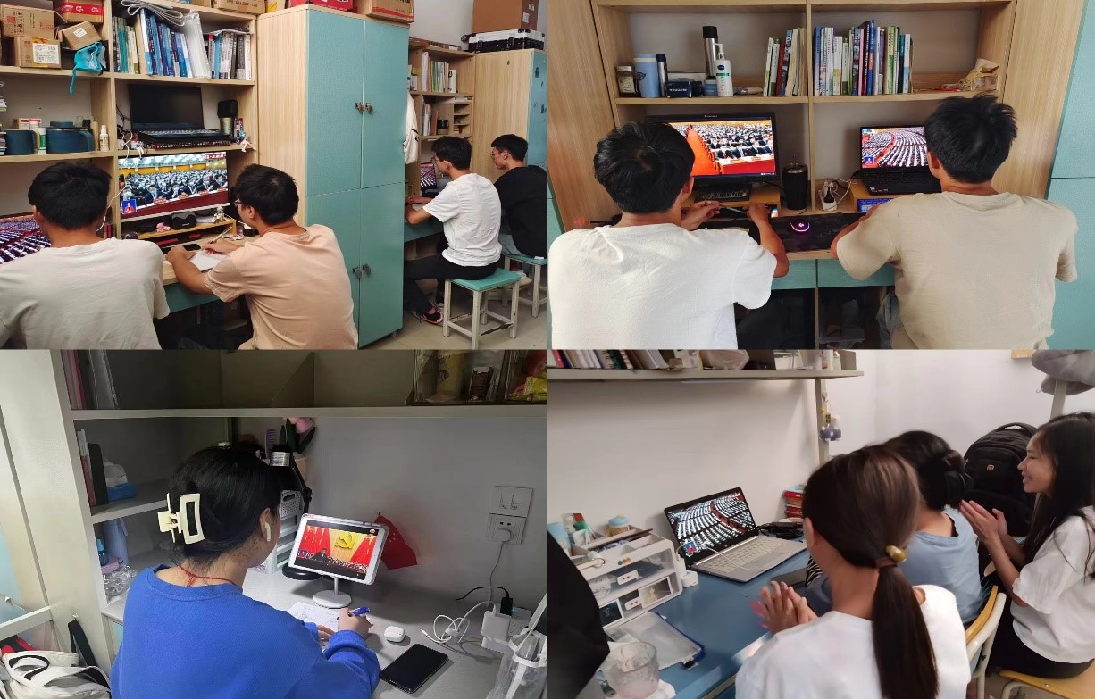 当习近平总书记等中央领导同志步入人民大会堂主席台,全体师生正襟危坐、全神贯注,认真聆听习近平总书记气势恢宏、慷慨激越的报告,共同见证这一伟大的历史时刻,共同感受团结奋进、一往无前的时代脉搏。学院师生聚精会神听报告,与北京声息相望、同频共振。报告结束时,大家情不自禁鼓掌,展开热烈讨论。