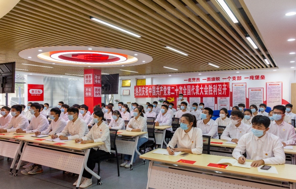 金秋迎盛会,同心向未来。10月16日上午10时,中国共产党第二十次全国代表大会开幕会在北京隆重举行。“热烈庆祝党的二十大胜利召开”标语格外醒目。环境科学与工程学院师生精神振奋、心潮澎湃。学院分别在学院会议室、学生社区设立分会场,组织在校师生集中收听收看党的二十大开幕会,认真聆听了习近平总书记代表第十九届中央委员会向大会作的报告。与此同时,校外实习实训师生通过手机、广播等渠道进行收听收看。