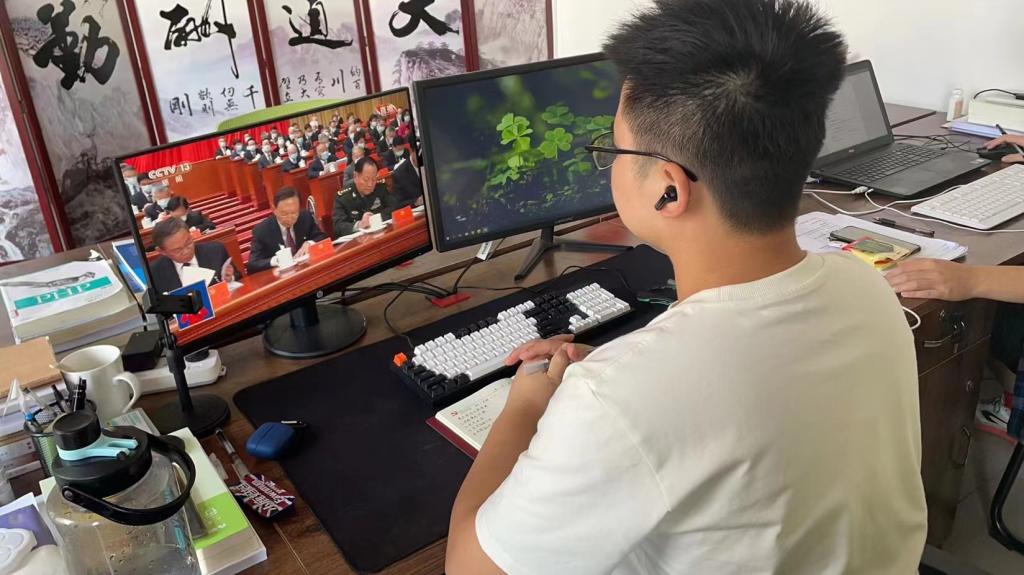 党员在工作间观看学习