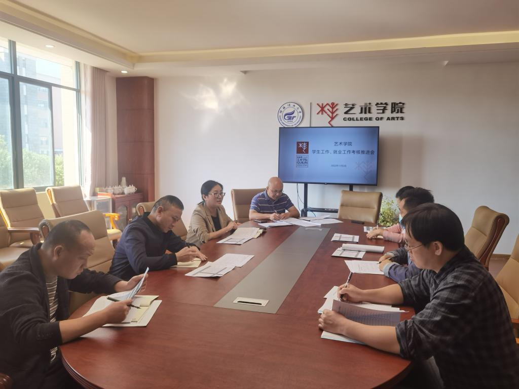 2022年11月2日上午,艺术学院在博雅楼324会议室召开2022年秋季学期学生工作、就业工作推进会。学院党政领导班子出席会议,相关科室负责人参加会议。会议由学院党委书记白凌婷主持。