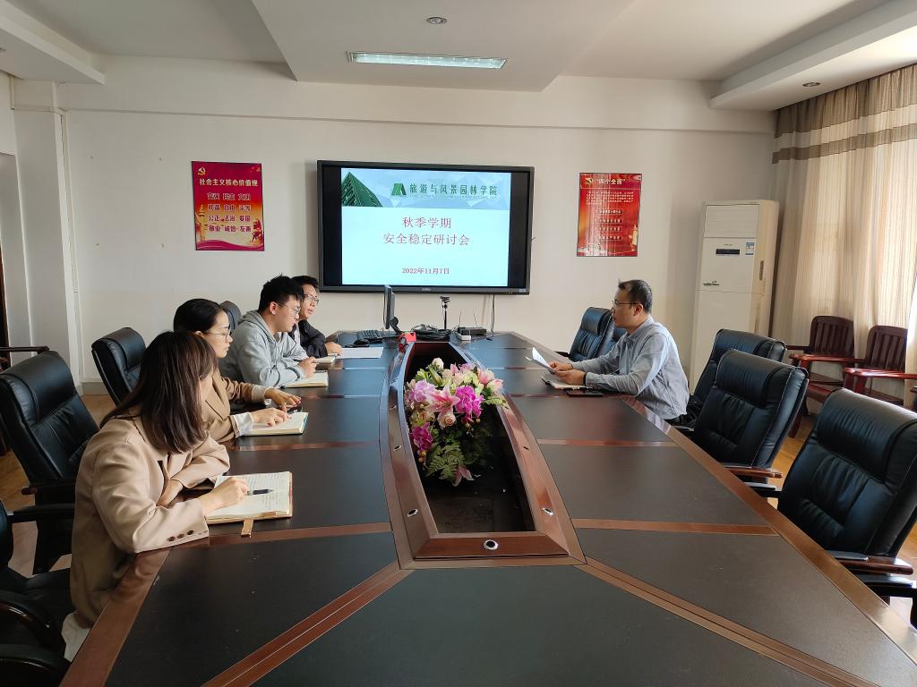 为切实强化校园安全管理,扎牢安全防线,持续推进校园安全工作,11月7日上午,旅游与风景园林学院在雁山校区教四栋509会议室召开2022年秋季学期安全稳定研讨会。学院党委副书记罗义淞主持会议,学工办全体辅导员参会。