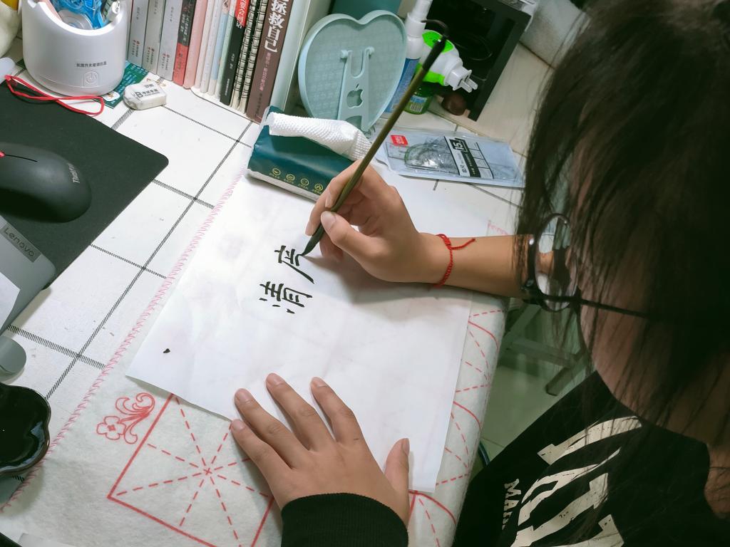 21级计算机类10班同学为“清廉”主题书法评比做准备