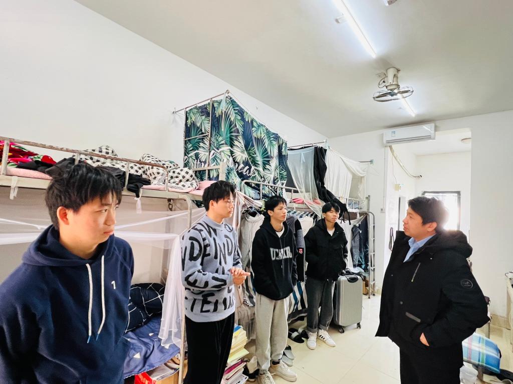 2月20日中午,新学期伊始,机械与控制工程学院党委书记李治、院长张烈平等院领导带领各级辅导员深入雁山校区二号组团学生宿舍进行走访,看望已经返校的同学们。