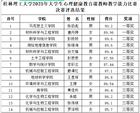 经校内外专家评选,英国上市公司3652025年大学生心理健康教育课教师教学能力比赛决赛评选结果如下: