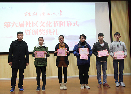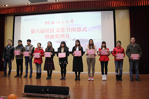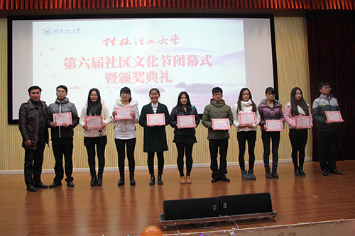 12月25日晚,学校第六届社区文化节闭幕式暨颁奖典礼在雁山校区图书馆报告厅成功举行。学生工作部(处)副部(处)长冯广辉、后勤管理处副处长耿杰利、管理学院党委副书记张瑞出席闭幕式,各学院宿舍管理负责老师、各大校级学生组织代表及桂林八大高校宿舍管理组织负责人代表出席闭幕式。