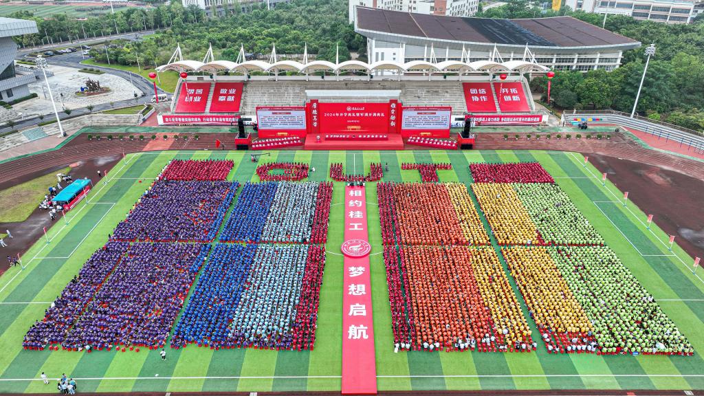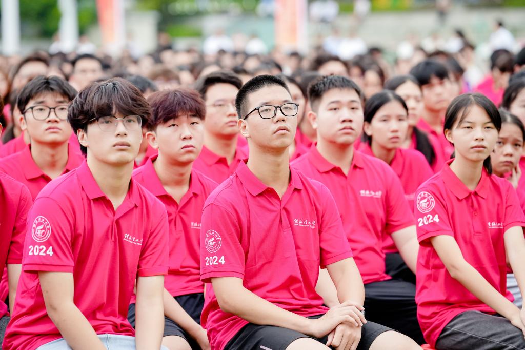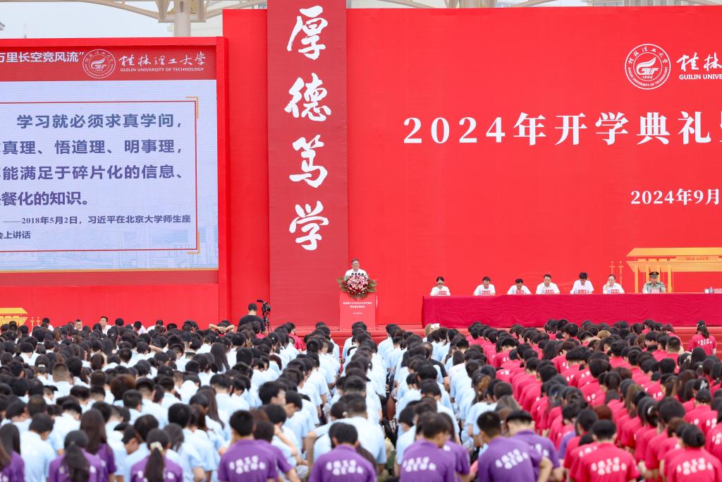 9月9日,我校2024年新生开学典礼暨军训开训典礼在雁山校区举行,学校党委书记邓军以“与党同心,与国同向,与时代同频共振,奋力书写为中国式现代化挺膺担当的青春篇章”为题,为2024级全体新生讲授“开学第一堂党课”,8000余名新生现场聆听了党课。活动由学校党委副书记吴志强主持。