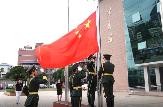 红日初升,其道大光。上午8时整,国旗护卫队整齐列阵、昂首挺立,迈着铿锵有力的步伐护卫着五星红旗走向升旗台。伴随着雄壮激昂的《义勇军进行曲》,五星红旗冉冉升起,随风飘扬。在场师生行注目礼,以洪亮的声音齐唱国歌,表达对祖国母亲的崇高敬意和深切祝福。