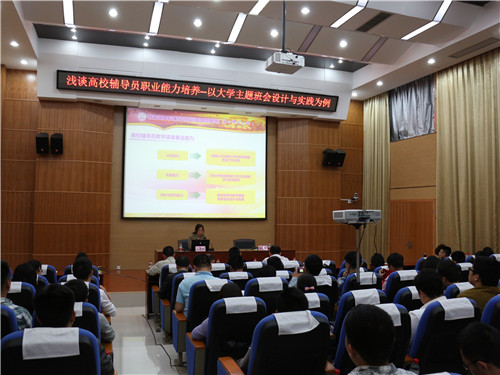 唐文红教授首先从管理学能力本位、心理学、马克思主义人学理论三个视角分析了辅导员职业能力的界定和辅导员职业能力的构成,指出主题班会是培养高校辅导员核心职业能力的重要途径,然后重点结合自身丰富的学生工作经验,就主题班会的重要意义、主题班会的多种功能以及如何设计主题班会的形式和内容等方面对大学生主题班会作了全面阐释,就我校辅导员在召开主题班会过程中遇到的问题给出了宝贵的意见和建议。