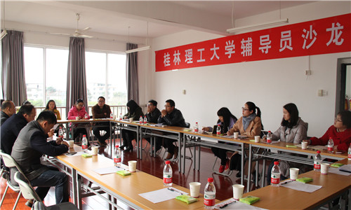 3月10日下午,我校2016年第一期辅导员沙龙在雁山校区辅导员之家举行。此次沙龙活动主要围绕师辈教育子项目“辅导员说”展开探讨交流,学生工作部负责人、部分近两年学工系统优秀辅导员老师参加了沙龙活动。