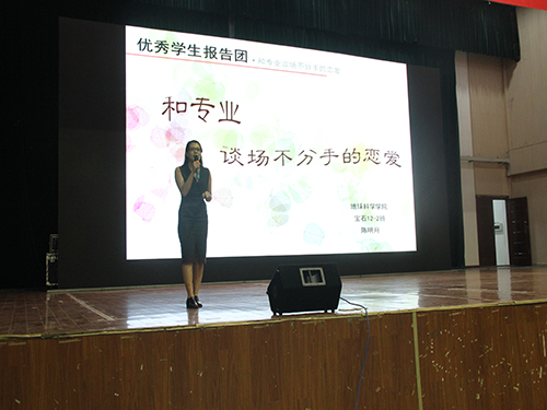 宣讲会在学生工作助理中心激昂的宣传视频中拉开序幕。宣讲会上,瑞思卡品牌CEO、2015届旅游学院毕业生校友韦福瑞以其风趣幽默的语言风格勉励大家要永不停歇追逐自己的梦想,相信目光有多远,人生就能走多远。第十届中国青年志愿者优秀个人奖获得者欧雷则为大家分享做公益的故事,其温暖情怀让大家感受到做公益的无限乐趣和深远意义。地球科学学院宝石12级陈明月以“与专业谈一场不分手的恋爱”为题,通过分享其独特的学霸成长历程,指引新生要不断挑战自我,提高自我,活出精彩自我。最后,2014年度中国大学生自强之星标兵、2015届旅游学院毕业生校友甘书杰以慷慨激昂的演讲将整场宣讲会带入高潮,其充满感动和正能量的事迹给人以激励和信念。