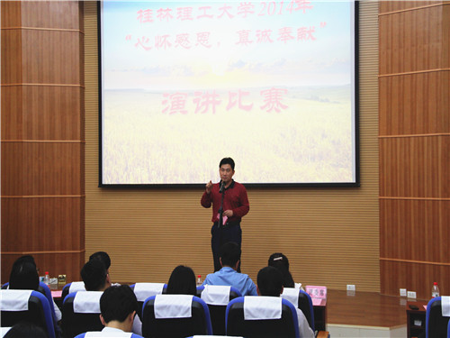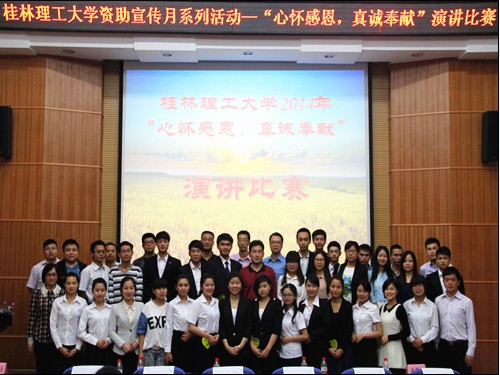 为了使国家资助政策深入人心,着力培养我校学生“自强、自立、励志、感恩、诚信”的优秀品质。4月15日下午,学校学生资助管理中心在雁山校区12教学术报告厅举办了学校2014年资助政策宣传月系列活动——“心怀感恩,真诚奉献”主题演讲比赛。学生工作部(处)副部(处)长张雷、校学生资助管理中心负责老师及各二级学院负责学生资助的老师担任本次比赛的评委,来自14个学院的28名选手参加了比赛。