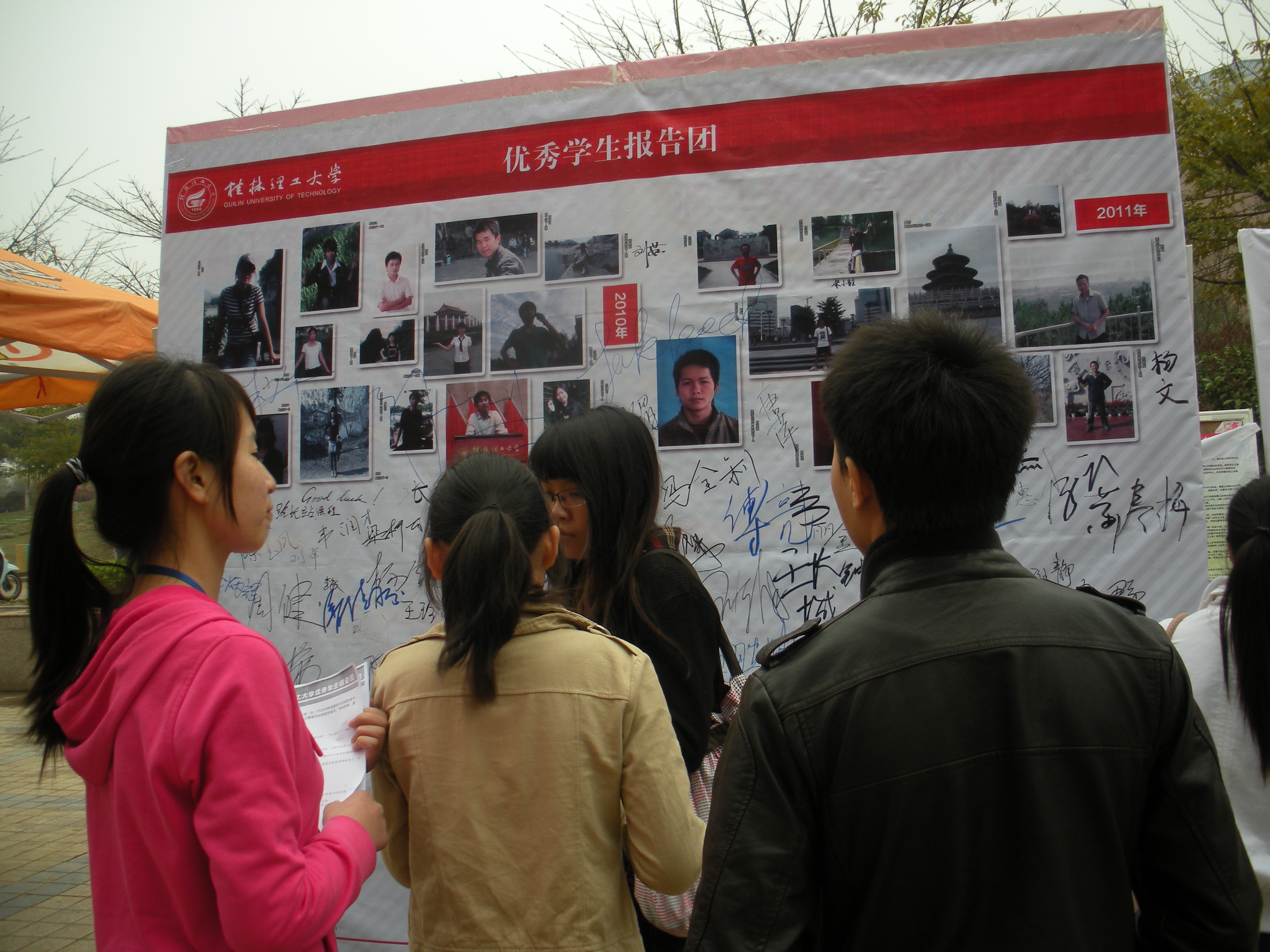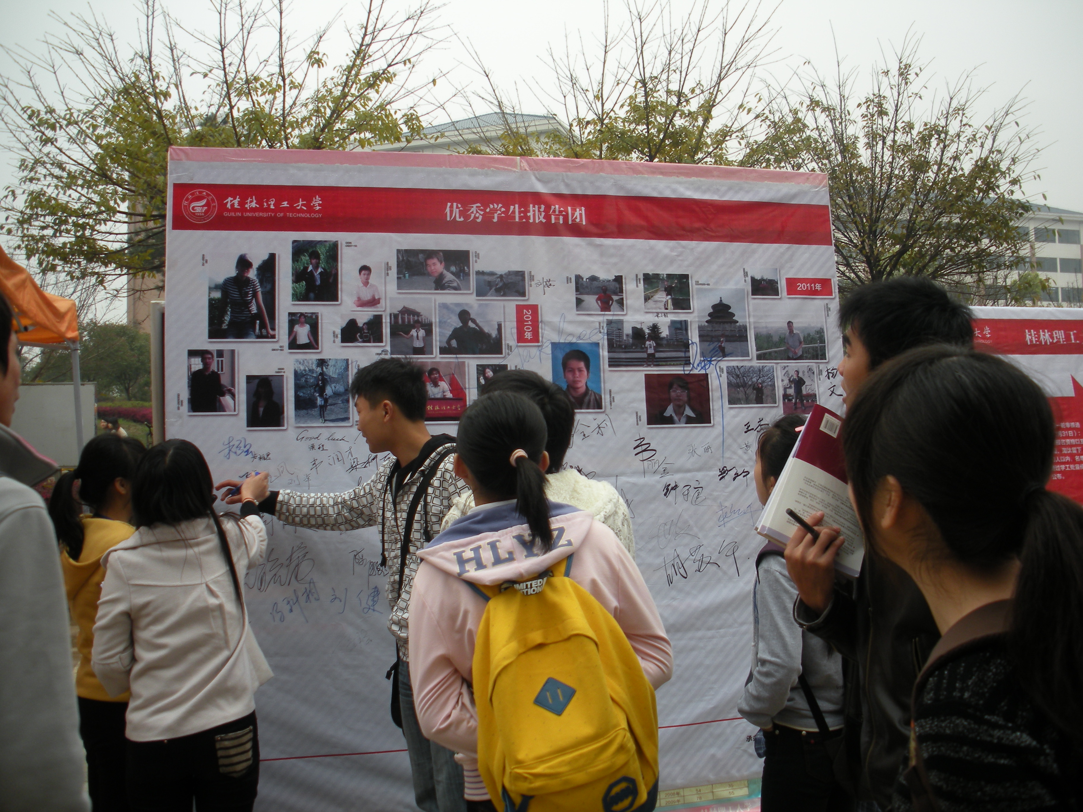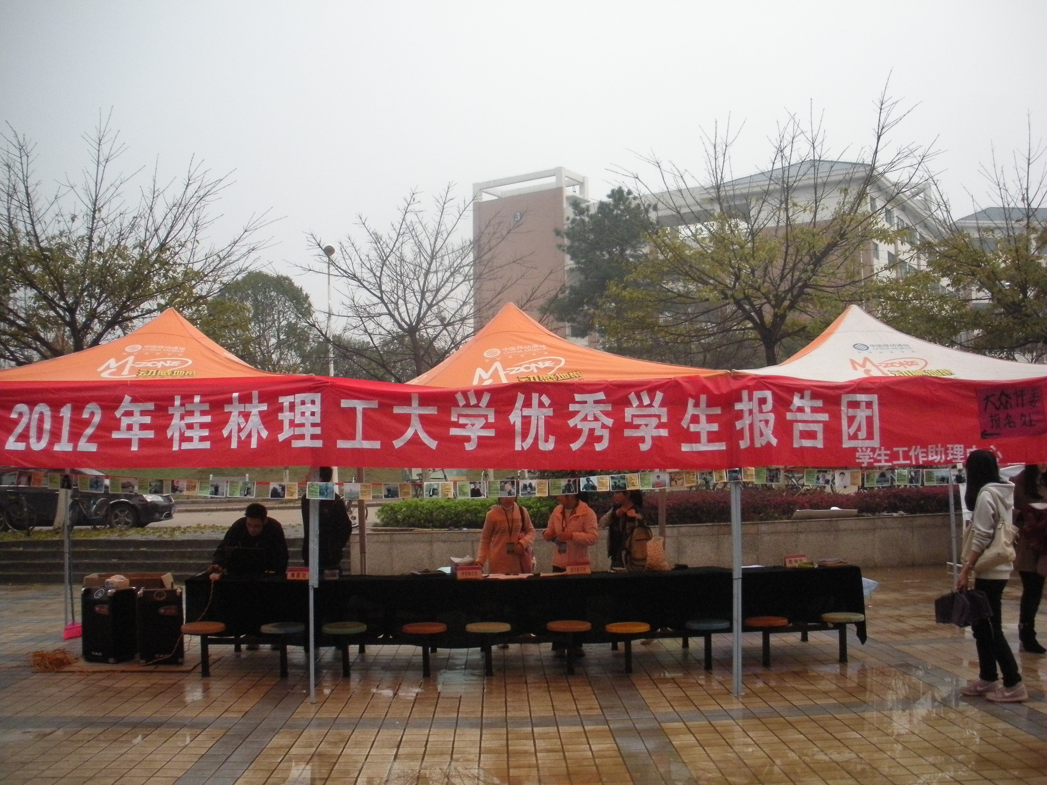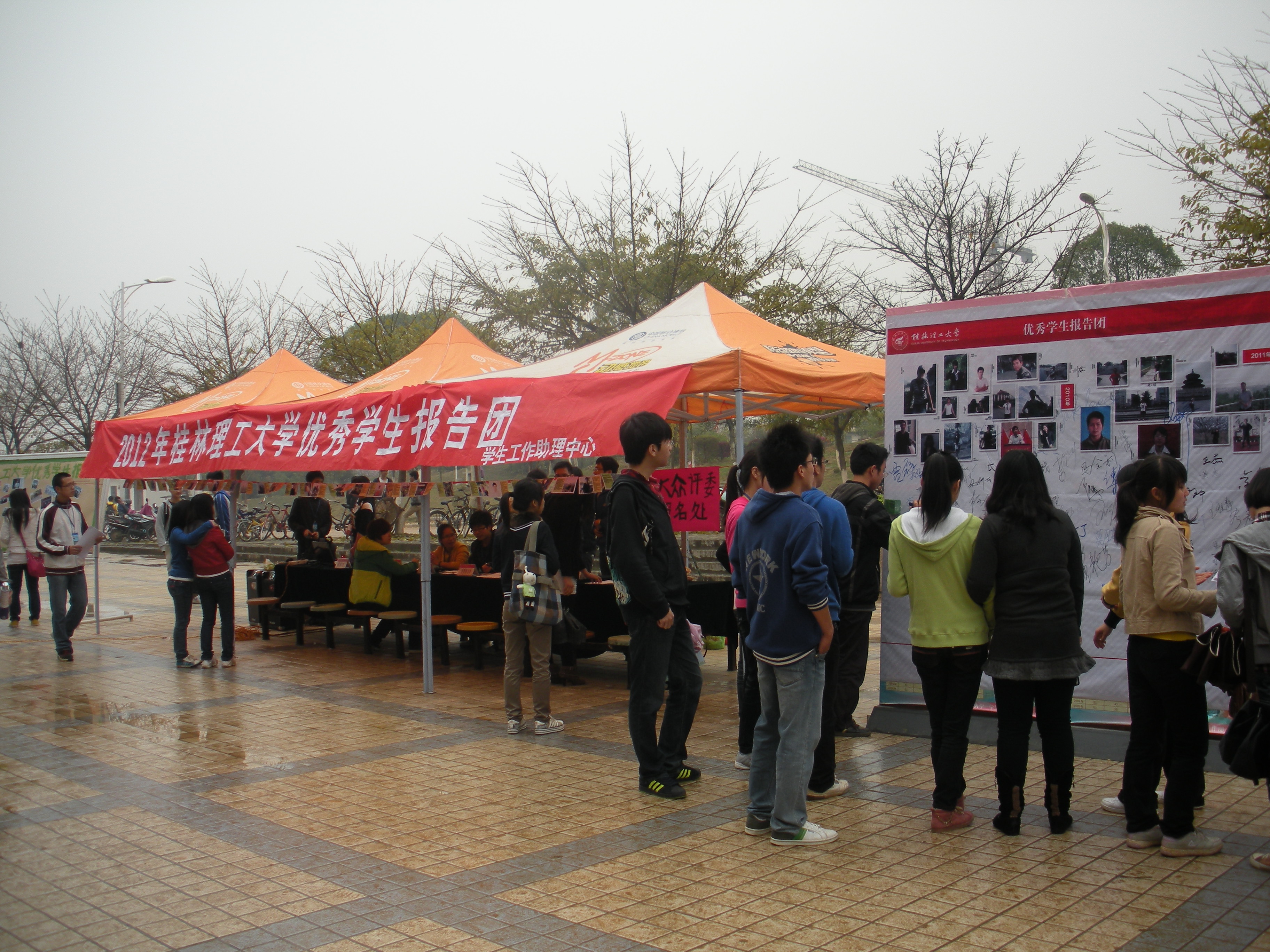 英国上市公司3652012年“优秀学生报告团”设点宣传活动于2012年3月28日在雁山校区1号食堂前小广场展开,宣传活动由英国上市公司365学生工作助理中心承办。
