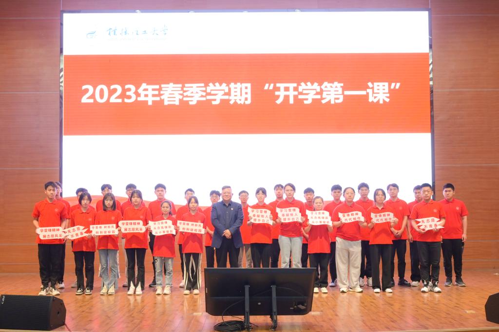 “雷锋精神,人人可学;奉献爱心,处处可为。”开学第一课上,邓军以“学习弘扬雷锋精神,以奋斗者的姿态从春天出发”为题,深入阐释了习近平总书记关于弘扬雷锋精神的重要论述,重温了毛泽东等老一辈革命家和历代党和国家领导人关于学习雷锋的谆谆教导,紧贴时代脉搏、紧扣培根关键、紧抓铸魂育人,旁征博引、追根溯源,从“眼中有光”“心中有爱”“肩上有责”“手上有招”“脚下有路”五个方面,引导桂工学子深刻把握雷锋精神的时代内涵,以青春之我在中国式现代化中挺膺奋进,让雷锋精神绽放更加璀璨的光芒。