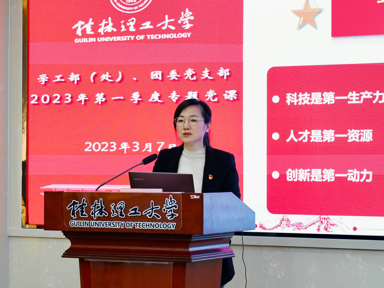 她激励大家要更加紧密地团结在以习近平同志为核心的党中央周围,以习近平新时代中国特色社会主义思想为指引,全面贯彻落实党的二十大精神,坚定信心、同心同德、解放思想、开拓创新,埋头苦干、奋勇前进,努力完成学校加快发展高质量发展目标任务,为建设高水平理工大学、建设壮美广西和全面建设社会主义现代化国家、全面推进中华民族伟大复兴而团结奋斗!