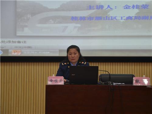桂林市雁山区工商局副局长金桂受邀到我校作了《大学生消费维权与就业创业法律知识》的专题讲座,她从大学生创业的相关政策、办企业所需要掌握的法律知识以及大学生消费维权等三个方面进行了详细的介绍,增强了同学们的消费维权法律意识,也为同学们就业创业提供了有效的法律指导。