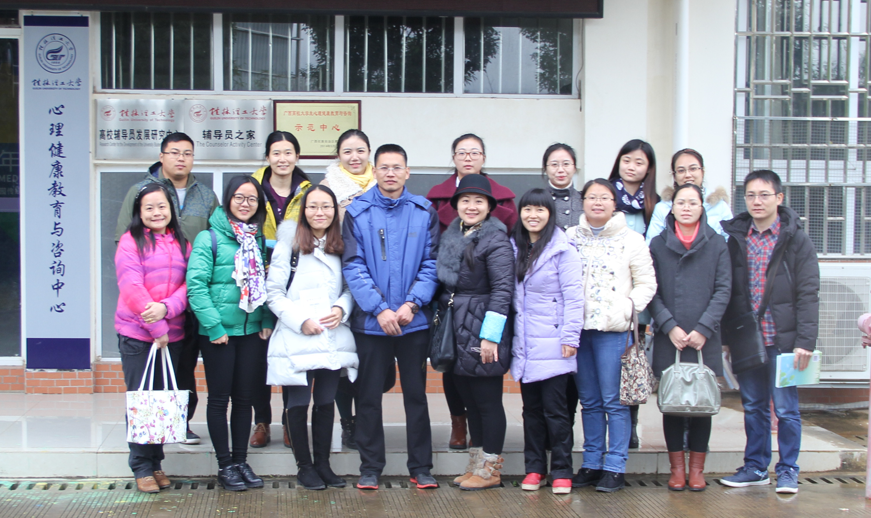 2016年11月25日下午,桂林航天工业学院学生工作(部)处副部(处)长、心理咨询中心主任刘莉湘君一行13人来我校心理健康教育与咨询中心考察交流。学生工作部(处)副部(处)长冯广辉、处长助理郑伟明、心理健康教育与咨询中心主任谭咏梅等参与了此次考察交流交流。 交流期间,航院老师参观了学校心理健康教育与咨询中心,并交流了两校的心理健康教育工作。谭咏梅老师向航院同仁介绍了心理咨询中心的行为观察室、心理咨询室、箱庭治疗室、情绪宣泄室等18个功能室,并详细演示了各种心理器材的使用;接着双方参观了学校新建的素质拓展基地并进行了体验。