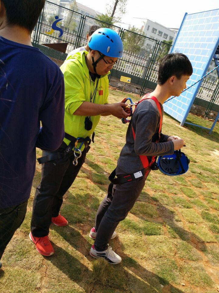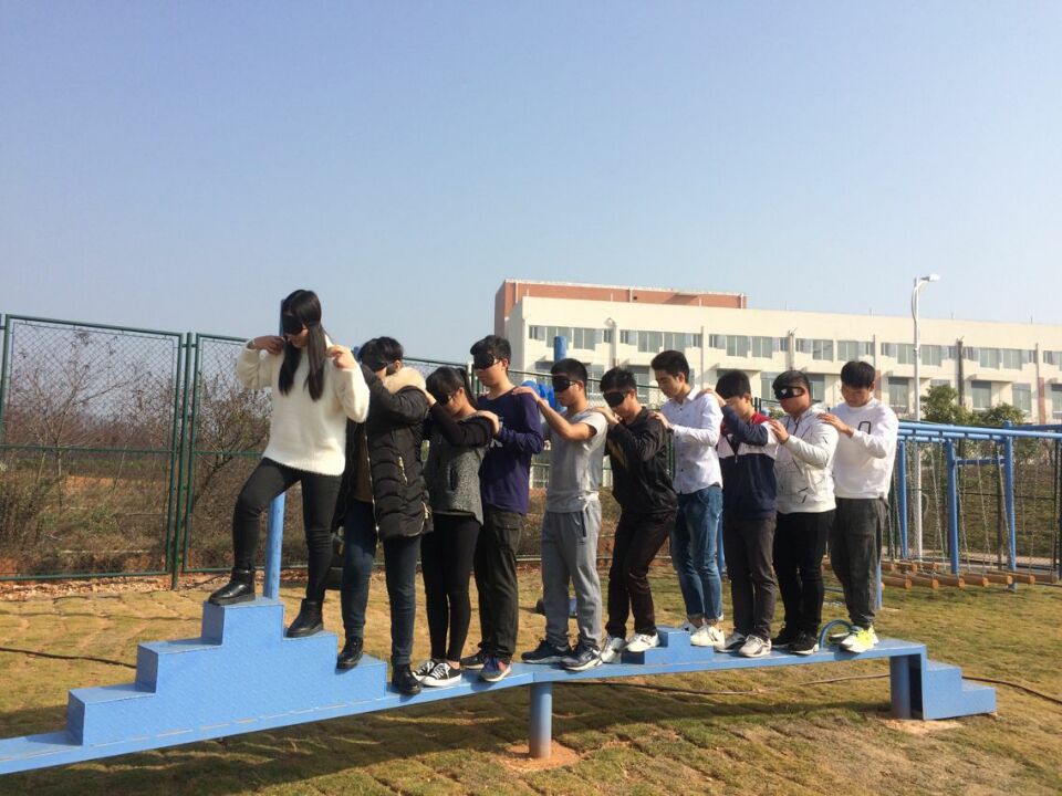 培训伊始,李老师为心理委员介绍了素质拓展的实质和意义,并带领心理委员们进行了系列破冰热身活动。待进入素质拓展基地后,心理委员们又依次进行了“梅花桩”、“盲人障碍”、“穿越黑洞”、“攀岩”等项目的挑战。