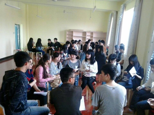 3月31日下午,心理健康教育与咨询中心在大学生创新创业基地B402团体心理活动室举行2013级班级心理委员交流会,培训由邝宏达老师主持,52位班级心理委员参加。