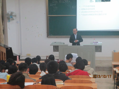2013年10月17日晚,我校2013级班级心理委员培训班在雁山校区07519教室顺利开班。培训共有两个主题,分别是《班级心理委员如何开展工作》、《班级团体心理活动组织要领》,由邝宏达老师主讲。