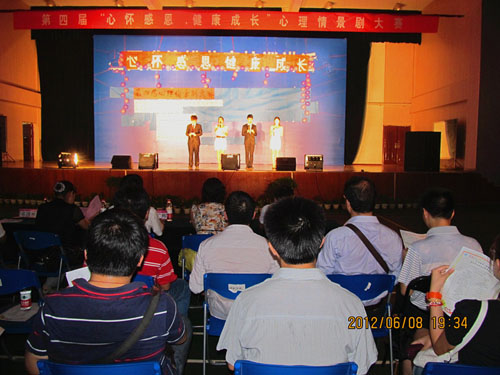 为了进一步丰富我校学生的校园文化生活,加强学校心理健康教育工作,促进学生健康成长。由我校心理健康与咨询中心主办,地球科学学院、环境科学与工程学院、材料科学与工程学院、测绘地理信息学院和人文社会科学学院一起承办的“心怀感恩,健康成长”第四届大学生心理情景剧大赛于6月8日晚19:30在雁山校区风雨球场正式拉开帷幕。担任本次大赛评委的领导和老师有学校学生工作(部)处处长熊英、副处长邓国彬、理学院党委副书记冯广辉、心理健康教育与咨询中心主任宋明霞以及伍开明老师和邝宏达老师。出席本次大赛的老师还有各学院团委书记和辅导员老师们。