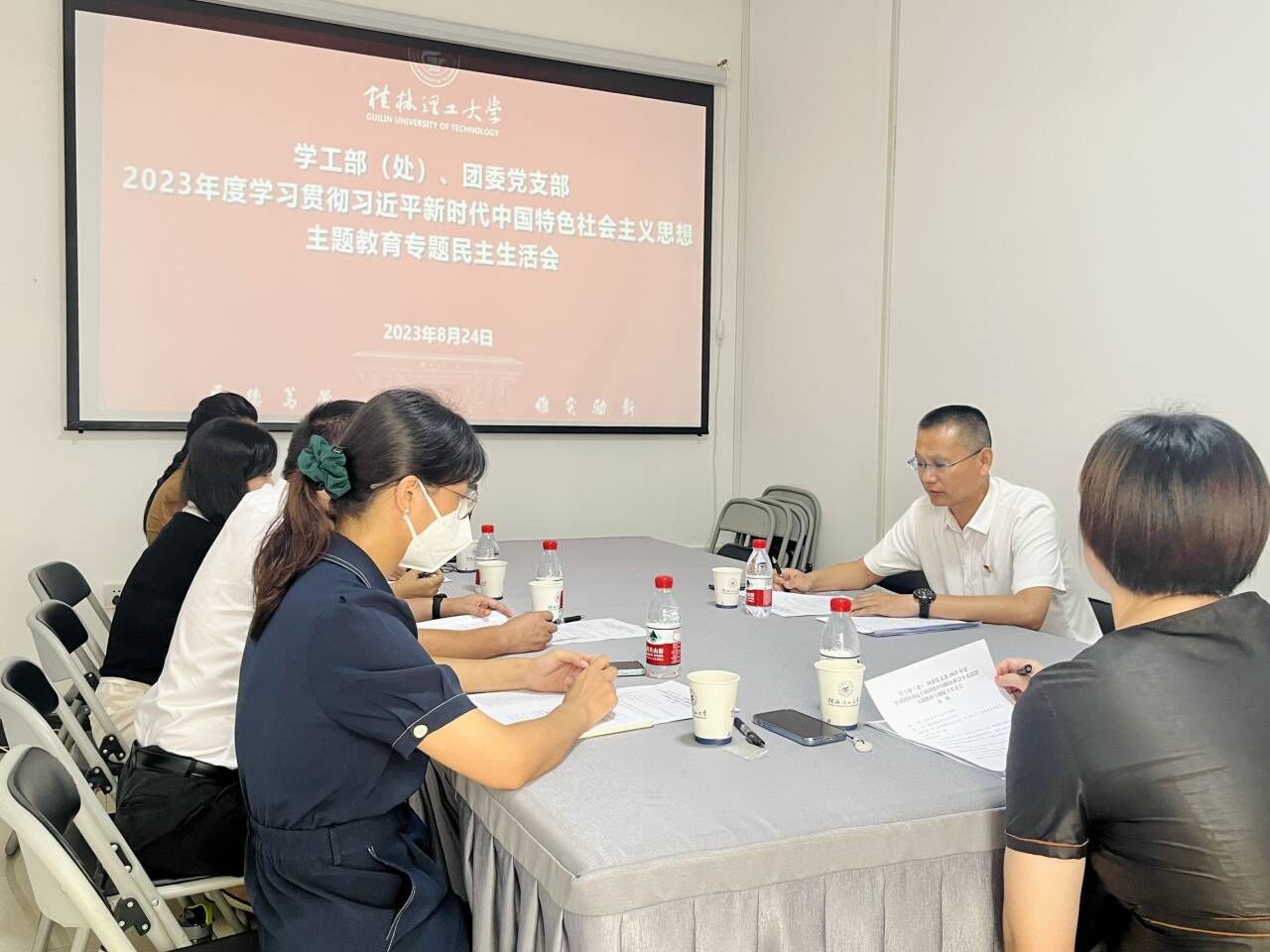 8月24日下午,学工部(处)、团委党支部在屏风校区学工部(处)会议室召开2023年度学习贯彻习近平新时代中国特色社会主义思想主题教育专题民主生活会。学工部(处)、团委领导班子、支部委员参加会议,会议由支部书记冯广辉同志主持。