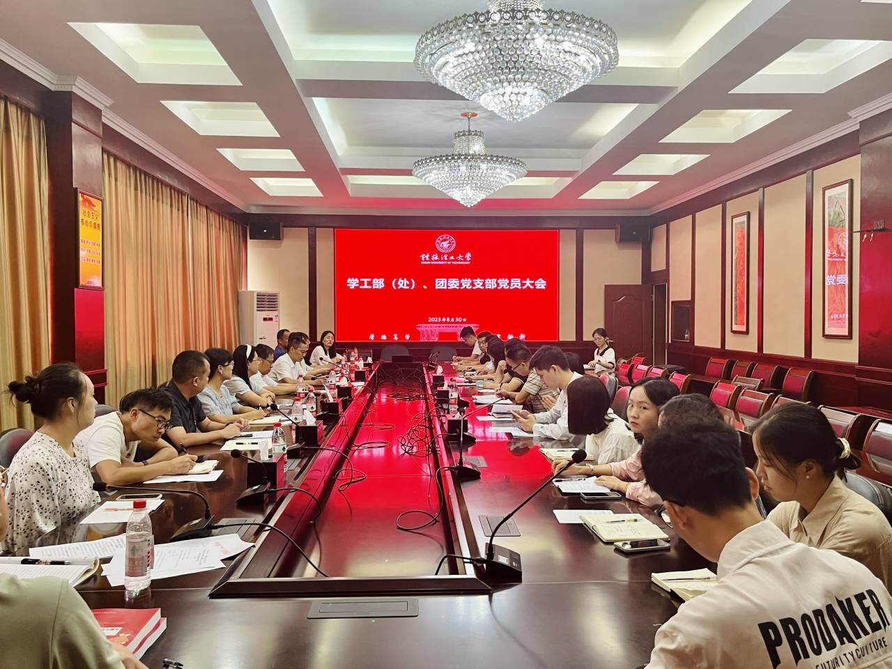 根据《中国共产党章程》和《中国共产党基层组织选举暂行条例》以及上级党组织有关规定,学工部(处)、团委党支部于8月30日上午在屏风校区教八楼三楼会议室召开党员大会。学校党委副书记吴志强到会指导,党支部成员参加会议,会议由支部书记冯广辉同志主持。