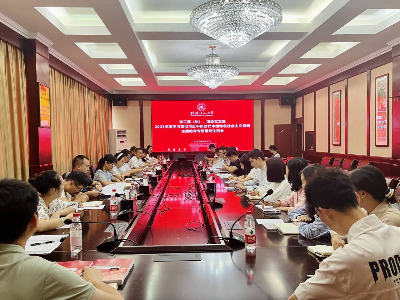 8月30日上午,学校党委副书记吴志强以普通党员身份参加学工部(处)、团委党支部在屏风校区教八楼三楼会议室召开的2023年度学习贯彻习近平新时代中国特色社会主义思想主题教育专题组织生活会,党支部全体成员参加会议,会议由支部书记冯广辉同志主持。