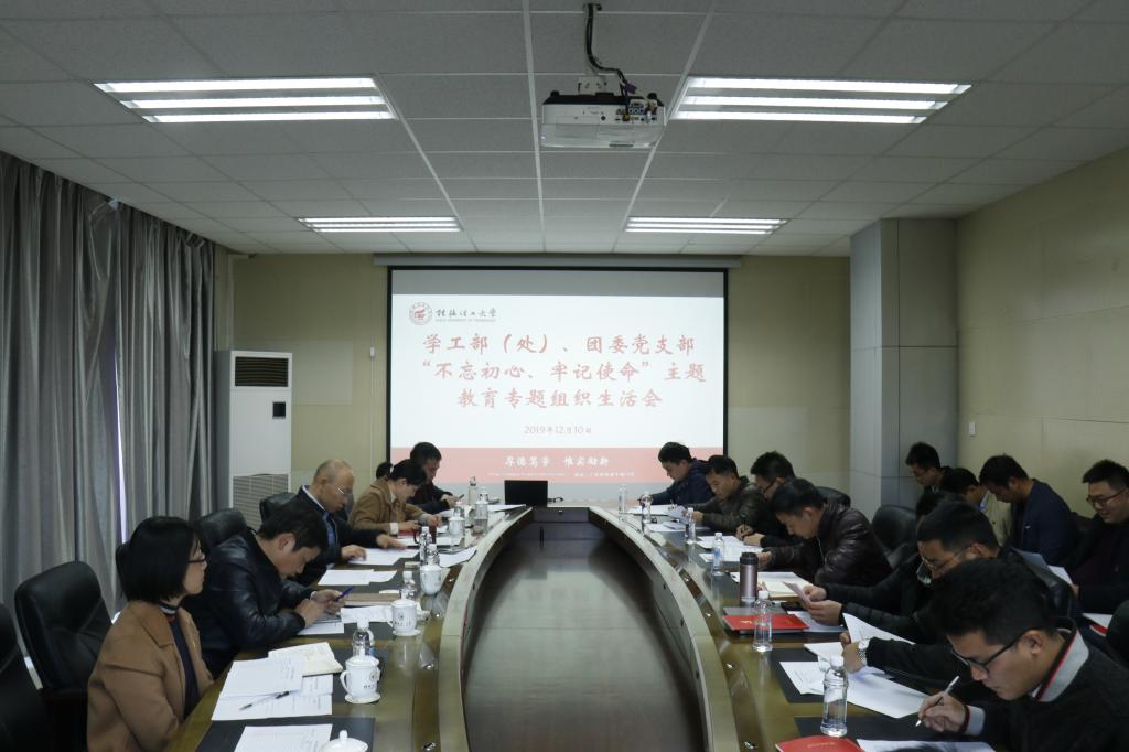 2019年12月10日下午,学工部(处)、团委党支部召开“不忘初心、牢记使命”专题民主生活会,按照习近平总书记“四个对照”“四个找一找”的要求,认真开展批评与自我批评,支部领导班子成员、部分党员参加本次民主生活会。