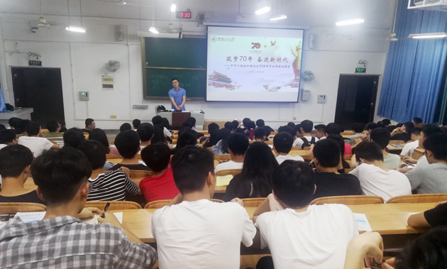 为深入学习贯彻习近平总书记关于“不忘初心、牢记使命”主题教育的重要讲话精神,强化习近平新时代中国特色社会主义思想研究,并以庆祝中华人民共和国成立70周年为契机深入开展大学生爱国主义教育,学校党委印发了《英国上市公司365开展“中华人民共和国成立70周年丰功伟绩进课堂”宣讲活动实施方案》,我校在全校范围内广泛开展了“中华人民共和国成立70周年丰功伟绩进课堂”活动。