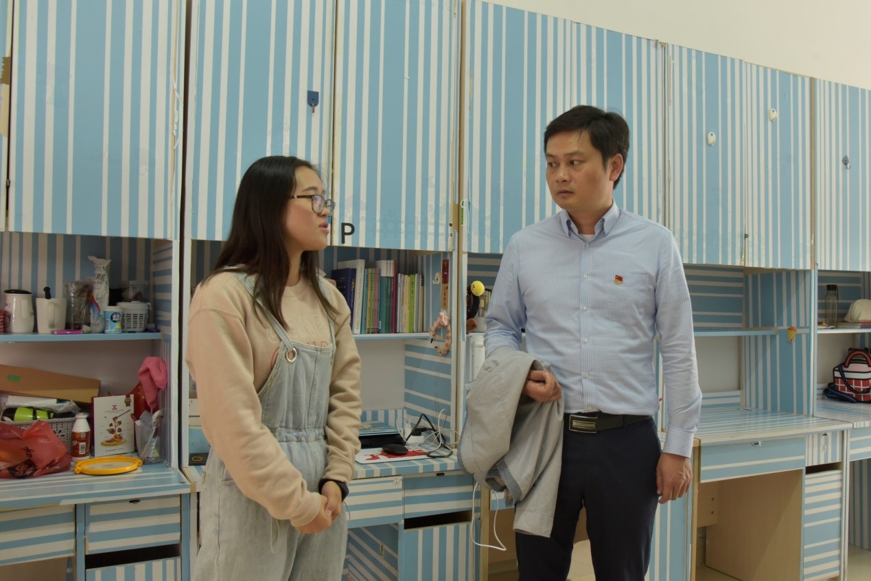 在走访活动过程中,张瑞副部(处)长强调宿舍人员及物品滞留问题要及时整改,并表明宿舍是思想政治工作和素质教育的重要阵地,要切实加强宿舍管理和社区文化建设,也督促辅导员们积极保持寝室卫生,做好宿舍安全防范措施,努力营造良好的生活环境。
